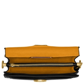 Descrição Um modelo versátil para o dia e para a noite, a bolsa Brook com aba frontal tem uma alça curta de corrente brilhante e uma alça de couro para usar como uma tiracolo ou dobrada para um visual mais curto e elegante. Com espaço para guardar todos os itens essenciais, o design arredondado de couro refinado apresenta um bolso externo conveniente e bolsos internos multifuncionais para fácil organização.