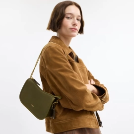 Descrição Absolutamente statement, essa bolsa combina o charme do couro macio com o impacto visual das correntes douradas, trazendo um toque de sofisticação com atitude. Mesmo em tamanho pequeno seu fechamento ajustável permite que ela fique mais ou menos slouch se adaptando a necessidade. A alça em rolotê longa adiciona um elemento inesperado ao design, equilibrando modernidade e ampliando as ocasiões de uso como bolsa de mão ou crossbody.