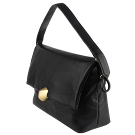 Bolsa com alça dupla de ombro, fechamento rincipal em zíper e com fecho metálico frontal. Possui zíper interno.