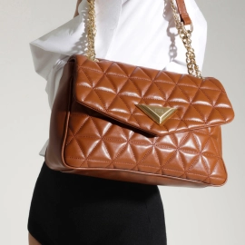 Descrição Com design amplo e estrutura flexível, esta bolsa shopping em camurça traz praticidade com elegância. As alças de corrente dourada com acabamento em couro adicionam sofisticação ao visual, enquanto o corpo maleável com amarração lateral garante versatilidade no uso. O destaque fica por conta do matelassê decorativo aplicado em relevo, conferindo textura e identidade à peça.