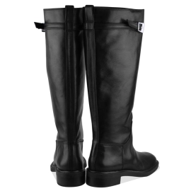 Classic with a twist! A bota de couro com salto grosso e cano longo ficou muito mais interessante com o charmoso detalhe do cano arredondado e o bico alongado, uma proposta super sofisticada para incorporar a tendencia western aos seus looks de inverno!