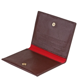 Porta cartões em couro com fechamento em botão de pressão.