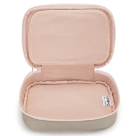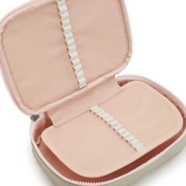 O 100 Pens é um estojo estruturado e espaçoso, com uma divisória central que possui elástico para acomodar lápis e canetas. O modelo é ideal para o dia a dia escolar ou até mesmo para guardar maquiagem.