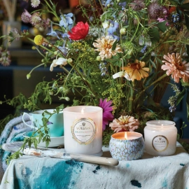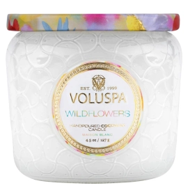 Descrição A exclusiva mistura de cera de coco de queima limpa da Voluspa é despejada à mão em um elegante frasco de vidro e coberta por uma tampa que mantém a vela livre de poeira quando não está em uso. Desfrute da fragrância por até 50 horas de queima.As velas são despejadas à mão nos Estados Unidos e apresentam mistura de cera de coco proprietária de queima limpa e pavios 100% naturais. Os produtos são livres de ftalatos, pesticidas, parabenos e sulfatos, e nunca são testados em animais. Dê um novo propósito ao vidro transformando-o em uma lembrança após a última queima.