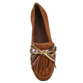 Descrição O Mocassim Dóris combina elegância e versatilidade em um calçado que valoriza o trabalho artesanal. Confeccionado em couro, o modelo traz recortes arredondados ao longo de toda a superfície e delicados barbicachos no cabedal — um detalhe clássico que reforça sua sofisticação.