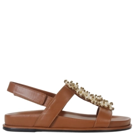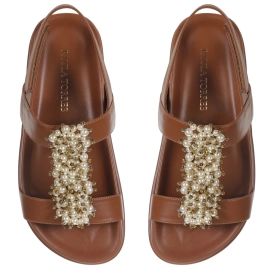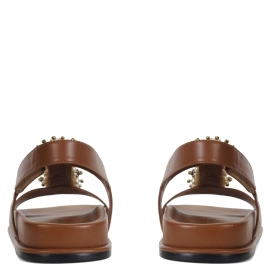Descrição A papete Dóris é produzida em couro. O modelo conta com duas tiras largas sobre o pé, adornadas com maxi pedras de resina que criam um visual marcante e contemporâneo. A tira traseira com fivela ajustável garante firmeza ao caminhar. Com palmilha anatômica e solado em borracha, a peça combina conforto, estilo e personalidade para compor looks casuais com atitude.