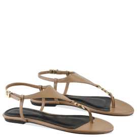 Descrição A rasteira Mila é confeccionada em couro. O modelo conta com tiras largas ajustáveis com fivelas sobre o peito do pé e no tornozelo, além de uma tira adicional envolvendo o dedão, acrescentando um toque contemporâneo ao visual. A palmilha e a vira são revestidas em couro, assim como o solado, proporcionando conforto e elegância em cada detalhe.