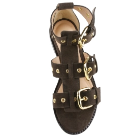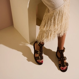 Descrição A Rasteira Suri é confeccionada em couro com textura croco. O modelo apresenta duas tiras largas, adornadas por uma elegante fivela metalizada dourada na lateral para ajuste. A peça conta com palmilha em recouro com pesponto na cor e solado em couro, proporcionando conforto e durabilidade.