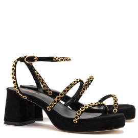 SANDÁLIA SALTO MÉDIO GIO MILANINA LARROUDÉ PRETO