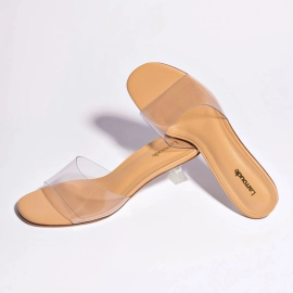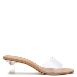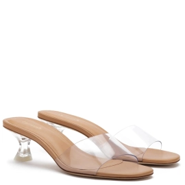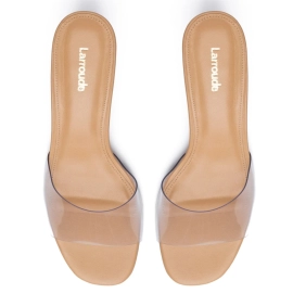 SANDÁLIA SALTO BAIXO VIVI LUCITE VINIL LARROUDÉ BEGE