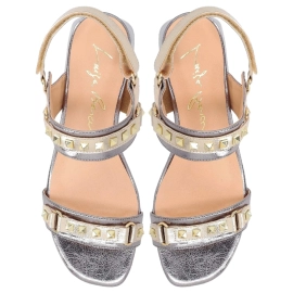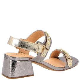 Descrição Para dias quentes, nada melhor do que um modelo que reúne todos os elementos que amamos. A Gio une o melhor dos dois mundos, sandália robusta, com salto quadrado e firme que contrasta com as tiras finas e delicadas com detalhe em metal dourado. É destaque para qualquer ocasião.