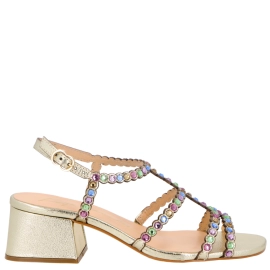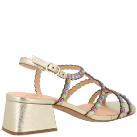 SANDÁLIA SALTO BLOCO MÉDIO LUIZA BARCELOS DOURADO