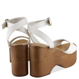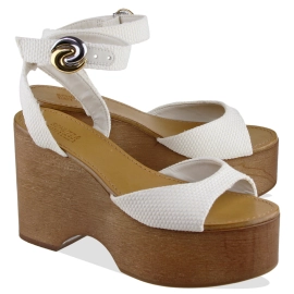 Descrição Uma sandália que equilibra a maestria artesanal de Luiza Barcelos com um visual único e moderno. O modelo com rebites em metal e cepa em madeira natural, acrescentam um toque de romantismo e sofisticação. O modelo possui cepa em madeira e detalhes de rebites metalizados na lateral.