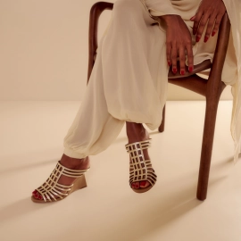 Descrição A delicadeza se encontra com a ousadia nesta sandália atemporal e feminina. Em salto alto arquitetônico, a sandália Luiza Barcelos é produzida em material tecnológico com acabamento metalcolor, possui tiras metalizadas trazendo ainda mais brilho para as produções de inverno. O modelo possui bico levemente quadrado e tem fechamento com fivela ajustável no tornozelo.
