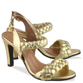 SANDÁLIA SALTO ALTO CHLOÉ BOTTI DOURADO
