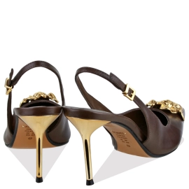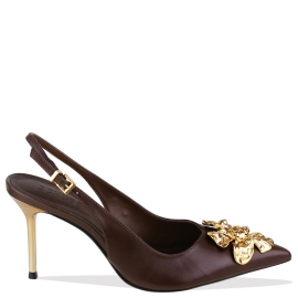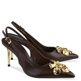 Descrição Delicado e sofisticado, este scarpin slingback combina a elegante construção em couro com o luxuoso enfeite metalizado - uma flor dourada que valoriza o design com bico fino. Por sua vez, o salto alto fino metalizado garante um toque moderno e refinado ao look. Com fechamento por fivela ajustável, é a escolha ideal para compor looks femininos com personalidade e elegância!