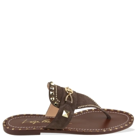 Descrição Inspirada na estética das gladiadoras, essa sandália traz o charme da camurça em um design marcante, com tiras largas e cinco fivelas metálicas douradas distribuídas ao longo do cabedal e tornozelo. A construção flat com solado fino e palmilha levemente acolchoada garante conforto, enquanto os metais trazem uma atmosfera de sofisticação com personalidade. Um modelo de impacto que une atitude e elegância na medida.