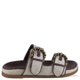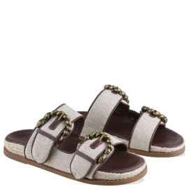 Descrição Com um toque fashion e despojado, esta papete é confeccionada em Camurça e couro , trazendo personalidade ao visual. As tiras delicadas recebem aplicações de metais geométricos em dourado, que acrescentam sofisticação ao design. O solado tratorado garante conforto e aderência, enquanto o fechamento ajustável com fivela proporciona ajuste perfeito. Uma peça que une estilo e praticidade para compor produções modernas.