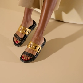Conforto e um toque de glamour para os seus dias de sol com este slide plataforma da Schutz. O modelo apresenta duas tiras largas que se cruzam sobre o peito do pé.