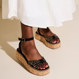 SANDÁLIA SALTO MÉDIO PLATAFORMA LUIZA BARCELOS PRETO