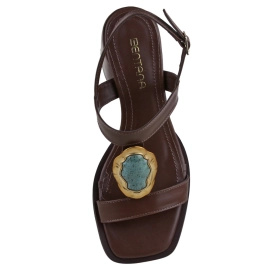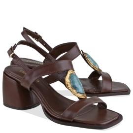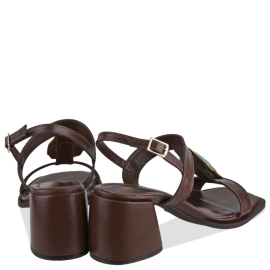 Descrição Sandália em couro com design moderno e elegante. O cabedal combina uma tira larga sobre os dedos e outra vertical no peito do pé, garantindo estilo e segurança. Fechamento no tornozelo com fivela grande ajustável. Conta com salto bloco médio, que une conforto e sofisticação para o dia a dia.