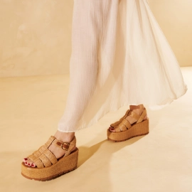 SANDÁLIA SALTO MÉDIO PLATAFORMA LUIZA BARCELOS BEGE