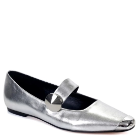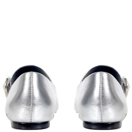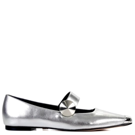 Sapatilha em mix de couro metalizado. Recorte da biqueira metalizado. Tiras com elástico ajustáveis para vestir com maior conforto e estabilidade.