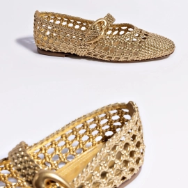 Descrição Com técnica de crochê, a Sapatilha Laura combina leveza, originalidade e delicadeza em cada ponto. A trama aberta valoriza o trabalho artesanal e garante um toque de sofisticação respirável, ideal para dias quentes ou para quem busca frescor no visual. Com bico arredondado e tira com fivela lateral, o modelo proporciona ajuste seguro e um charme atemporal. O solado em couro reforça o conforto e a durabilidade da peça, perfeita para acompanhar você em momentos casuais ou produções mais refinadas.